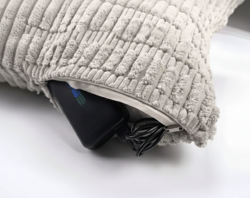 Coussin chauffant en coton robuste, conçu pour offrir un réchauffement rapide grâce à son système USB.
